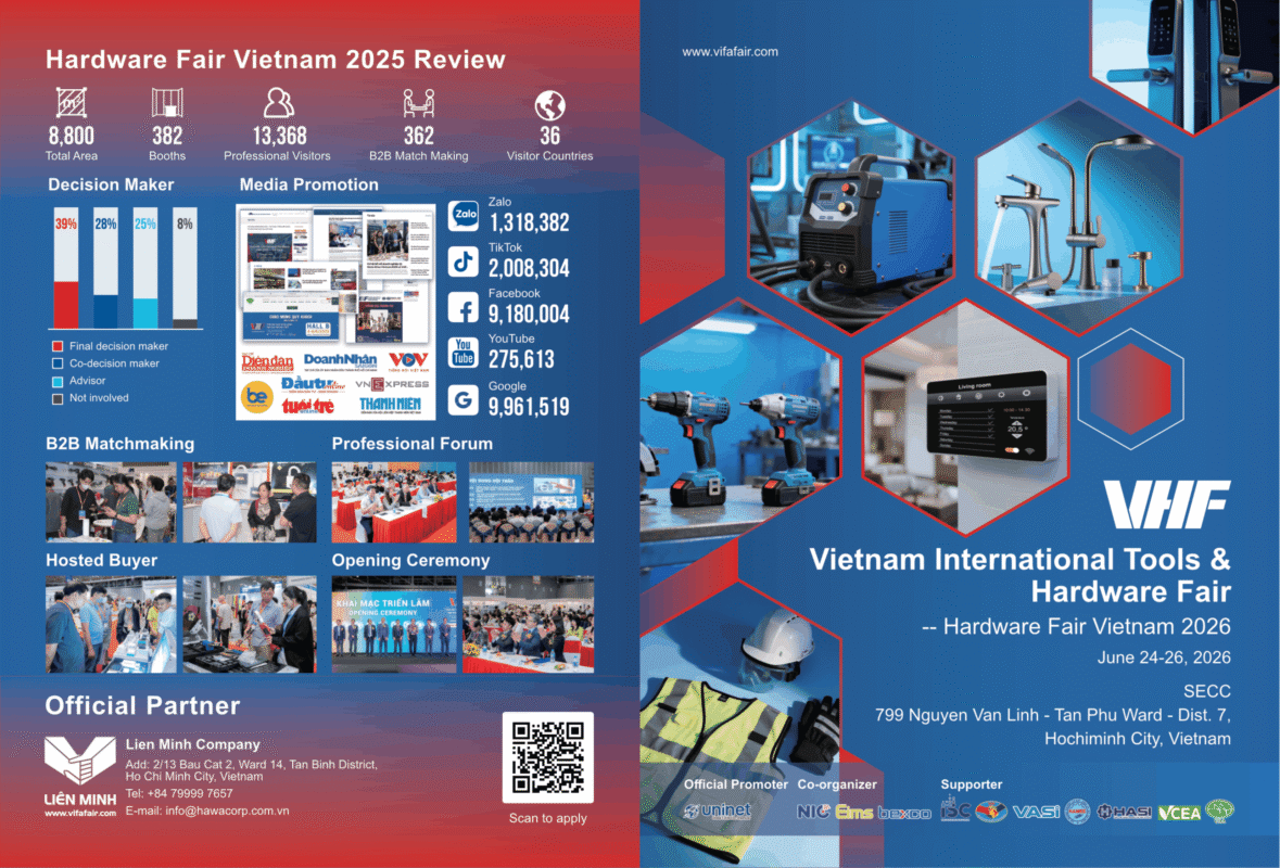 Hardware Fair Vietnam là lựa chọn hàng đầu cho các công ty trong ngành thâm nhập thị trường Việt Nam bằng cách kết nối với các nhà phân phối, nhà bán lẻ và các chuyên gia chủ chốt trong ngành.